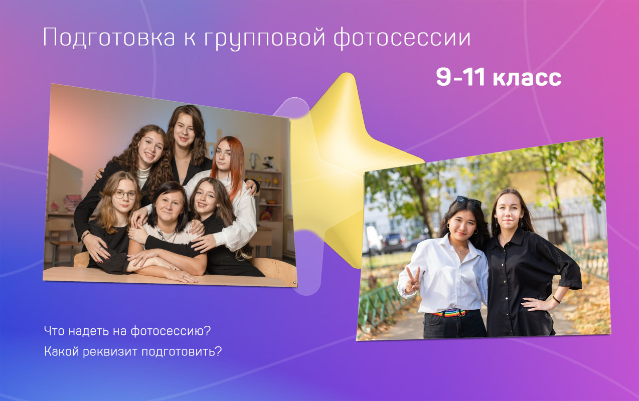 Для групповой фотосессии в 9-11 классах мы рекомендуем подготовить 5 локаций.